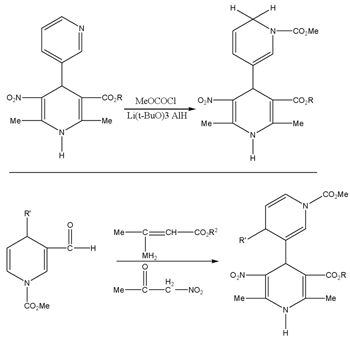 4. Design and syntheses of 4-[3-(1-methoxycarbonyl-1,6-dihydropyridyl)]- and 4-[3-(1-methoxycarbonyl-4-substituted-1,4-dihydropyridyl)]- derivatives of alkyl 1,4-dihydro-2,6-dimethyl-3-nitro-5-pyridine-carboxylates with calcium channel modulating activities (RA-212RP)