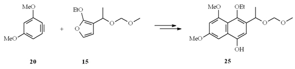 17. Synthesis of a protected 2-ethoxy-3-hydroxyethylfuran and its regioselectivity as a Diels–Alder diene on reaction with 3,5-dimethoxydehydrobenzene (DL-267GP)