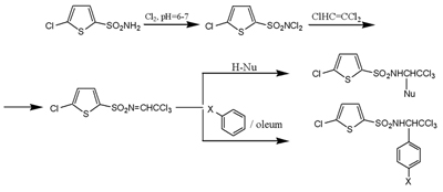 4. The reaction of the N,N-dichloroamide of 5-chloro-2-thienylsulfonic acid with trichloroethylene as a convenient synthetic route to a series of trichloroethylamides of 5-chloro-2-thienylsulfonic acid (OC-1163HP)