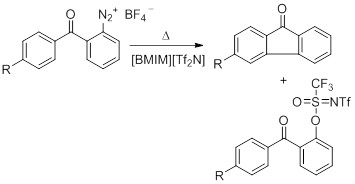 5. Ring-closure reaction of 2-benzoylbenzenediazonium salts in 1-butyl-3-methylimidazolium ionic liquids (KL-10195OP)