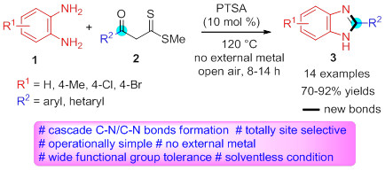 8. Brønsted acid-catalyzed metal-free one-pot synthesis of benzimidazoles via [4+1] heteroannulation of ortho-phenylenediamines with β-oxodithioesters (KL-10069OP)