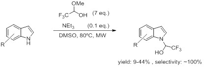 12. Environmentally benign, microwave-assisted chemoselective N-hydroxyalkylation of indoles with trifluoroacetaldehyde methyl hemiacetal (KL-10286OP)