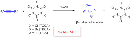 17. Reaction of trihaloisocyanuric acids with alkynes: an efficient methodology for preparation of β-haloenol acetates (KL-10211OP)