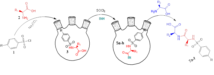 Synthesis of benzotriazole–amino acid–benzenesulfonamide conjugates and phenylsulfonyl-dipeptides (KA-12429HP)